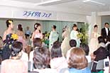 2006年7月31日、MIYABIの1stブライダルフェアーを行いました。多くのお客様にお越しいただき盛り上がりました。メインは、ウエディングドレスから10分内で和装打掛に早変わりをしました。